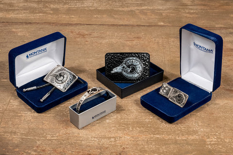 Full Curl Brands has a custom line of Silversmith Jewelry items, all branded with the Full Curl Logo. From our custom cast, antique/hammerstone finished Belt Buckles, to silver plated cast Boggles, Money Clip's and Women's Bracelet's. All Silversmith items have been custom designed and produced by our high-end partners at Montana Silversmiths®!